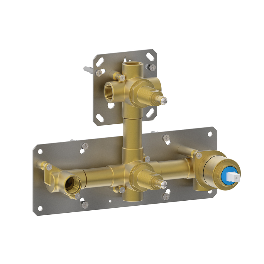 Built-in part GGBOX 5305, rotary diverter, shower kit preparation, 4 free outlets.